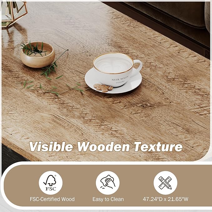• Trusted Choice Living Room Center Tables: Built with high-quality engineered wood (MDF), this sturdy farmhouse coffee table is designed to support up to 350 lbs. The reinforced bottom structure enhances durability and adds a stylish touch, ensuring long-lasting performance for years to come. Coffee Table is made from FSC-Certified wood.