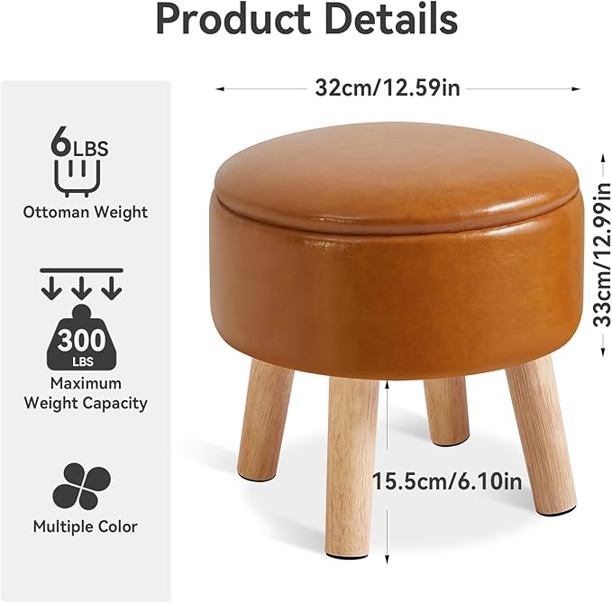 • Small and Practical: The round foot rest with storage measures 12.9''W x 12.9''D x 12.59''H. With its small size, you can easily place it anywhere and it won't take up too much space. In addition, we provide you with a variety of colors for the small footstool. It can integrate with all kinds of scenes. This practical mini ottoman is ideal for living room, bedroom, office, kinderroom, study room, entryway and other places.