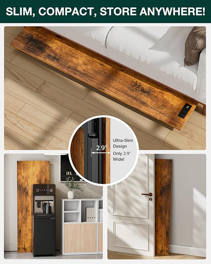 • 👍𝗨𝗟𝗧𝗥𝗔-𝗦𝗟𝗜𝗠, 𝗦𝗣𝗔𝗖𝗘-𝗦𝗔𝗩𝗜𝗡𝗚 𝗦𝗧𝗢𝗥𝗔𝗚𝗘 — When folded, the desk is just 2.9" thick—easily stored behind doors, under beds, or in closets. Lightweight and portable, it’s perfect for compact living areas or anyone needing a foldable table that’s easy to move