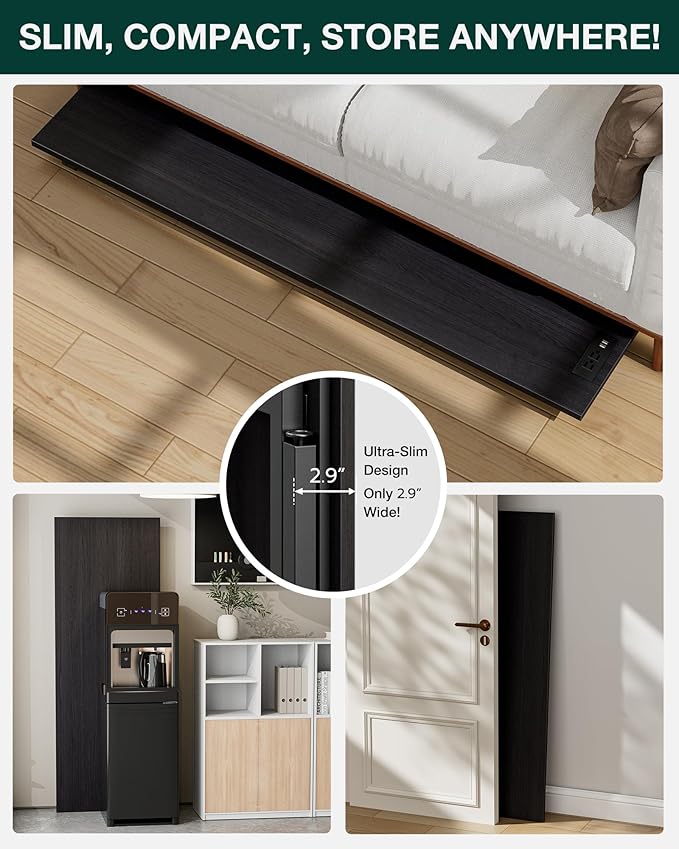 • 👍𝗨𝗟𝗧𝗥𝗔-𝗦𝗟𝗜𝗠, 𝗦𝗣𝗔𝗖𝗘-𝗦𝗔𝗩𝗜𝗡𝗚 𝗦𝗧𝗢𝗥𝗔𝗚𝗘 — When folded, the desk is just 2.9" thick—easily stored behind doors, under beds, or in closets. Lightweight and portable, it’s perfect for compact living areas or anyone needing a foldable table that’s easy to move