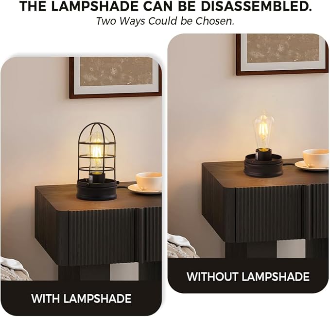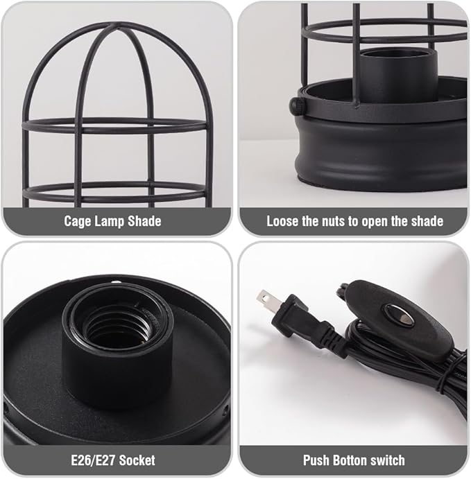 • Black Vintage Cage Design.Industrial desk lamp is constructed of high quality iron wire which features a black cage metal lampshade.The small retro table lamp adopt the black wire cage which blends industrial charm and vintage aesthetics