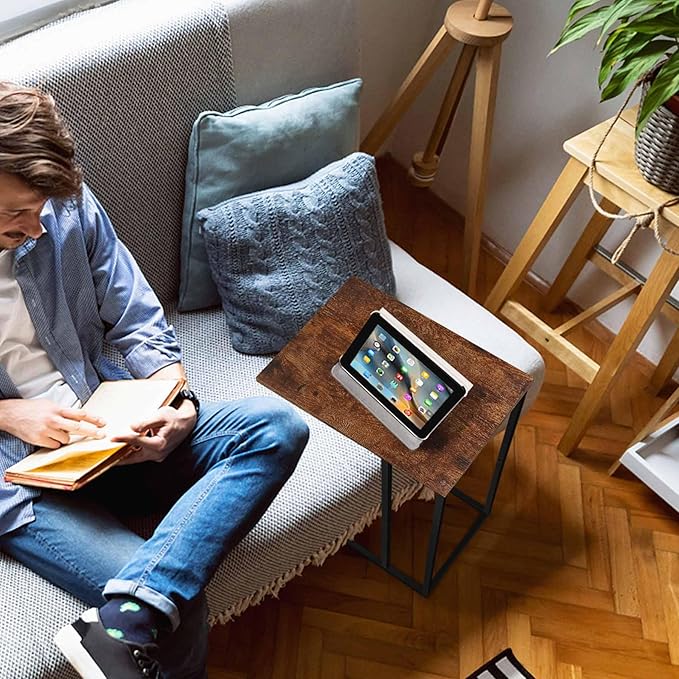 • [Variety of Uses End Tables Set of 2] The small end table have c shaped design and can slide under the couch or bed easily. The size of 16” L x 12” W x 25” H makes the c tray table perfectly fit in smaller spaces. You can put snack, drinks, remote controls etc. The narrow side table can be readily transformed into a workstation and hold your laptop when home office.