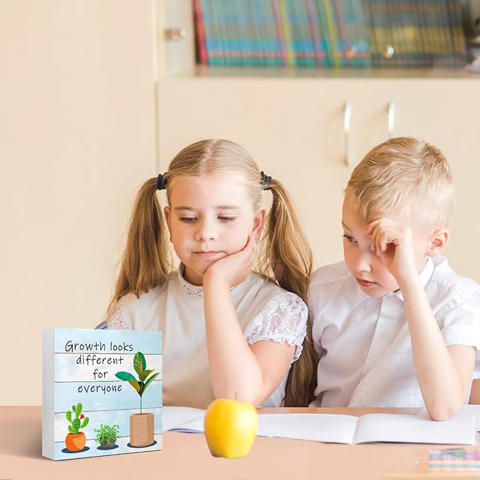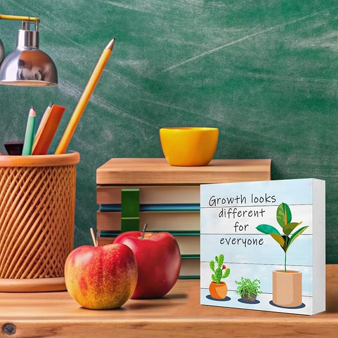 LVQHI Inspirational Wood Block Sign,Growth Looks Different for Everyone Plant Motivational Wooden Block Sign for Home Bedroom Office Desk Table Decor,Inspirational Cheer Up Gift Grain-Blue