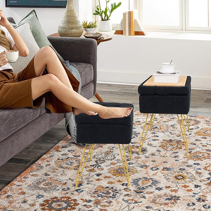 • Easy to assemble:Assemble your vanity stool effortlessly in minutes using included hardware. Features 360° anti-skid adjustable footpads that protect floors while ensuring wobble-free use. The reinforced metal legs support up to 300lbs, making this storage stool both durable and practical.