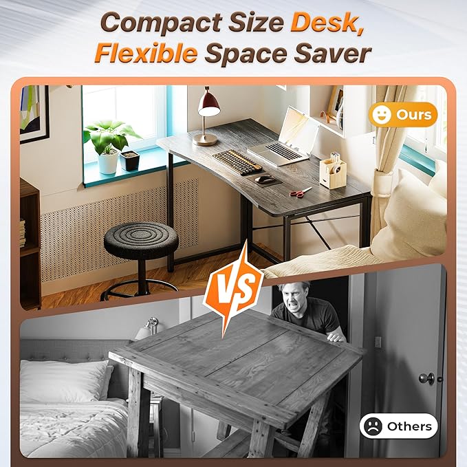 • 【Compact Foldable Desk for Small Spaces】Short on space? This foldable computer desk is your go-to solution for small home office, apartments, small bedrooms, tight corners, or RVs. This office desk folds down to only 9.3" thick, so you can put it next to the couch, door, or narrow gaps when not in use. Free up your living area without sacrificing functionality