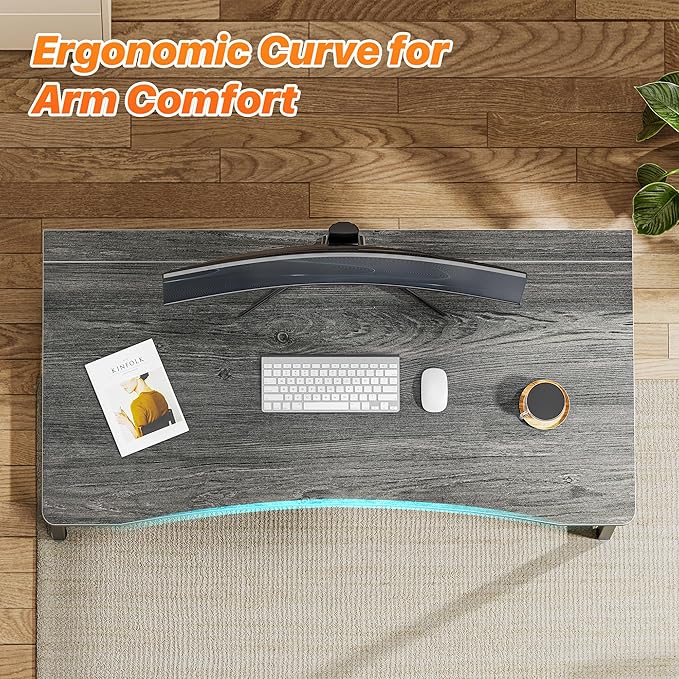• 【18.9 Inch Deeper Desktop】Deeper desktop of the foldable office desk offer more space for laptop, notes and books... Sturdy 18mm thick steel legs make this home office desk stay rock-solid, less wobbling here. Say goodbye to sharp edges! The smooth, body-friendly curved desktop eases your hands, providing a more comfortable experience whether you’re working, studying, or doing makeup