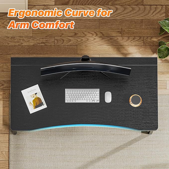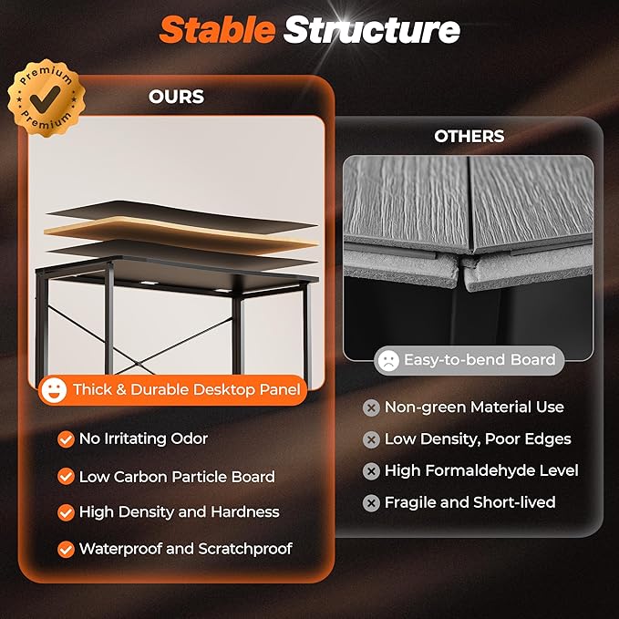 • 【18.9 Inch Deeper Desktop】Deeper desktop of the foldable office desk offer more space for laptop, notes and books... Sturdy 18mm thick steel legs and X-frame support make this home office desk stay rock-solid, less wobbling here. Say goodbye to sharp edges! The smooth, body-friendly curved desktop eases your hands, providing a more comfortable experience whether you’re working, studying, or doing makeup