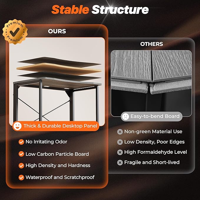 • 【18.9 Inch Deeper Desktop】Deeper desktop of the foldable office desk offer more space for laptop, notes and books... Sturdy 18mm thick steel legs and X-frame support make this home office desk stay rock-solid, less wobbling here. Say goodbye to sharp edges! The smooth, body-friendly curved desktop eases your hands, providing a more comfortable experience whether you’re working, studying, or doing makeup