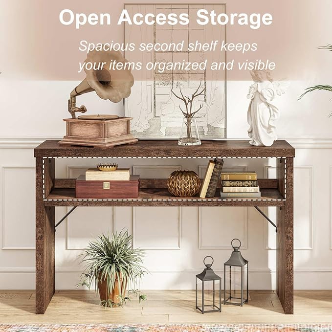 • Two-Tier Entryway Table: This sofa table features a spacious 47" tabletop and an open lower shelf for books, baskets, and decorative pieces. The 2 tier layout offers ample storage while keeping everything visible and easy to access, perfect for use as a console table, hallway table, or behind couch table.