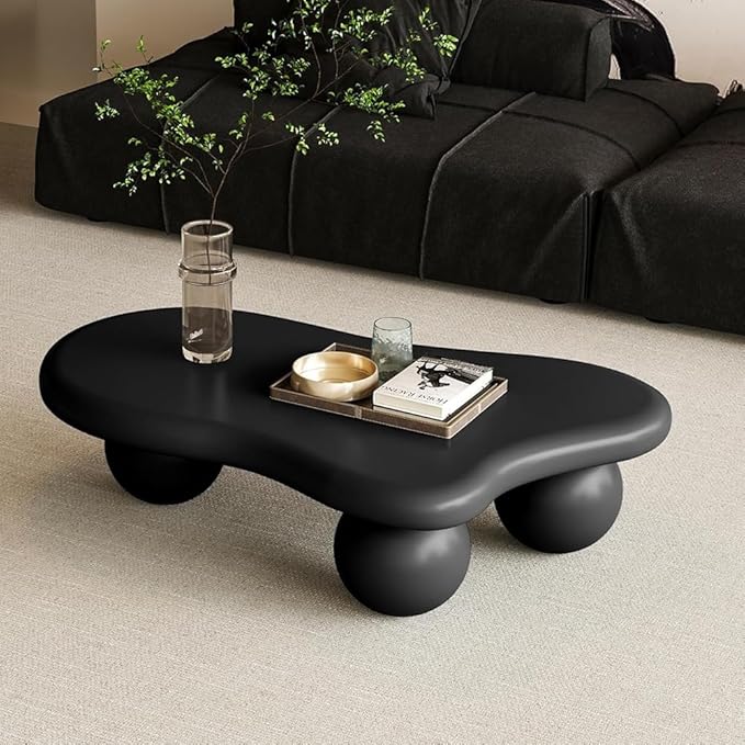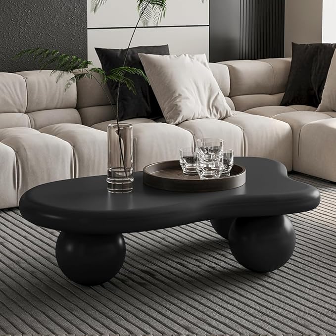 40" Irregular Cloud Coffee Table Asymmetrical Tea Table Low Center Tables with 3 Ball Legs for Living Room Office Apartment Modern Furniture Cream Black