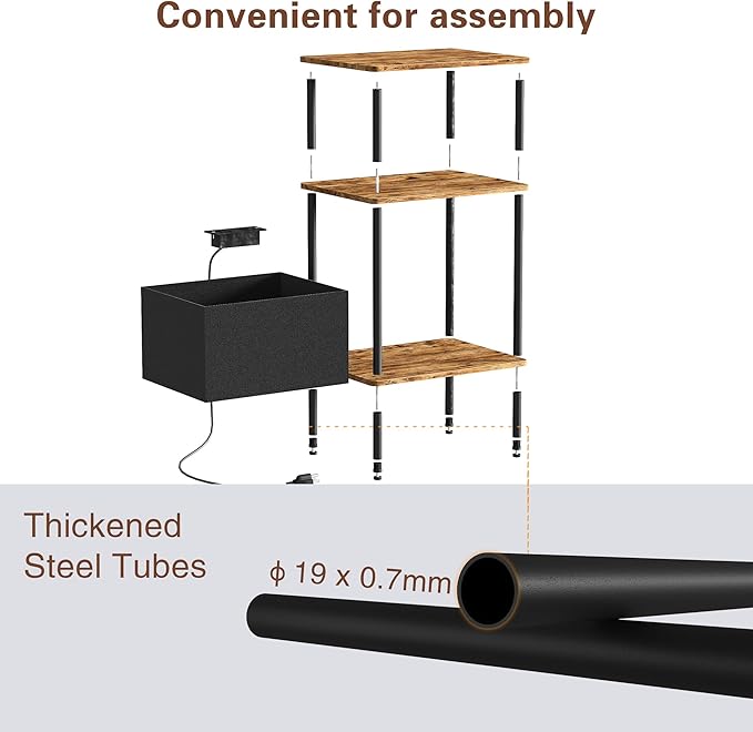 Small Side Table with Charging Station, End Table for Small Spaces, Slim Nightstand with Outlet,Sofa Beside Table, 3-Tier Storage Shelf,Living Room, Bed Room, Rustic Brown
