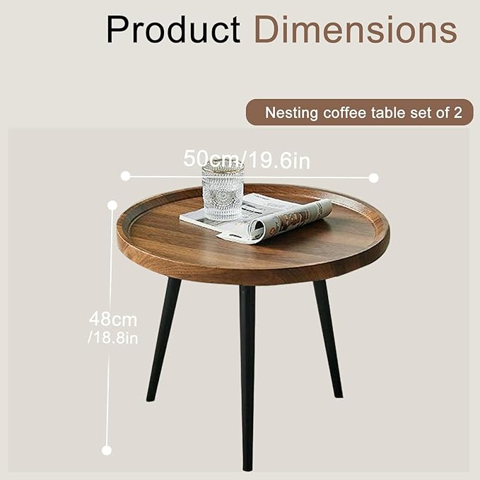Jessie Small Round Coffee Tables,50x50x48cm Mid Century Modern Nesting Tables,Easy Assembly Circle Walnut Coffee Tables with Non-Slip Feet,Nesting Coffee Table for Living Room Balcony Yard