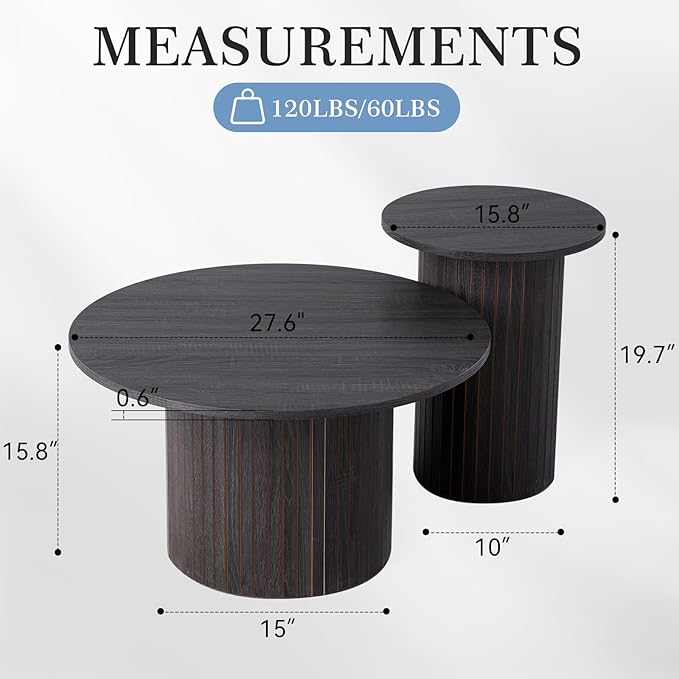 • [Easy to Assemble] The diameters of the coffee table tops are 27.6 inches and 15.8 inches respectively. Clear installation instructions are included in the product, making it convenient for you to assemble. If there is any damage or issue, please contact us in a timely manner. We will reply to you within 24 hours and provide solutions. We aim to bring you a satisfying shopping experience!