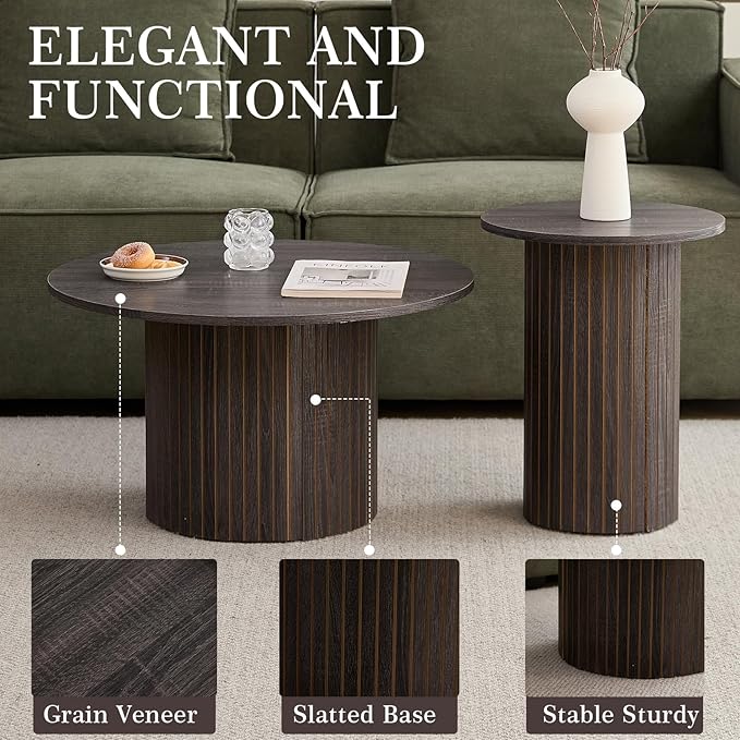 • [Sturdy and Durable] This round coffee table set of 2 is meticulously crafted from premium medium-density fiberboard, featuring a wood-grain veneer surface that is odor-free and visually appealing, ensuring worry-free use.