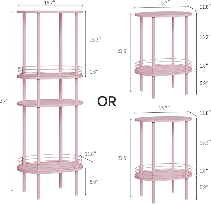• [FOR SMALL SPACES] Standing at 11.8"D x 15.7"W x 21.5"H, this end table takes up little floor space while serving .This two-tier side tables with top/bottom shelf for extra storage has ample space for books, tablets, remote controls, snacks and drinks