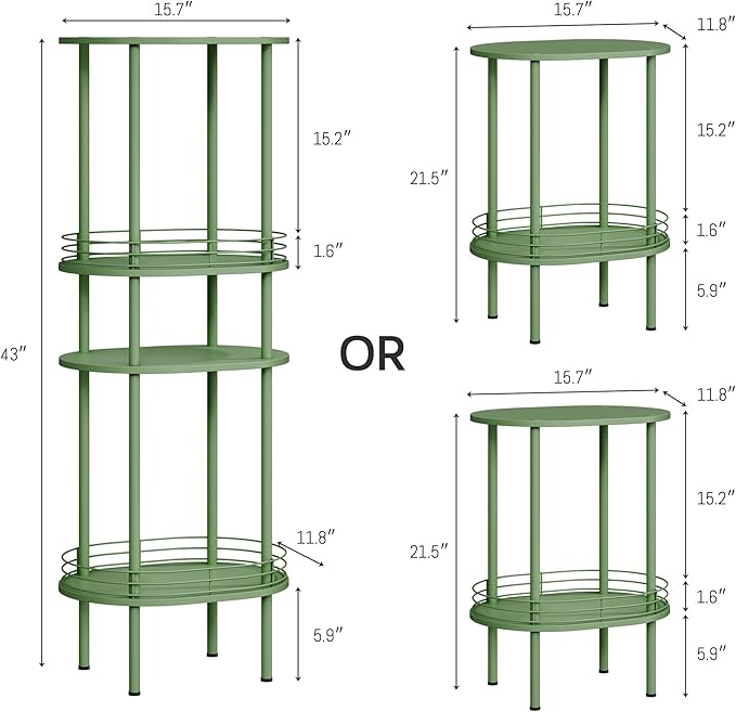 • [FOR SMALL SPACES] Standing at 11.8"D x 15.7"W x 21.5"H, this end table takes up little floor space while serving .This two-tier side tables with top/bottom shelf for extra storage has ample space for books, tablets, remote controls, snacks and drinks