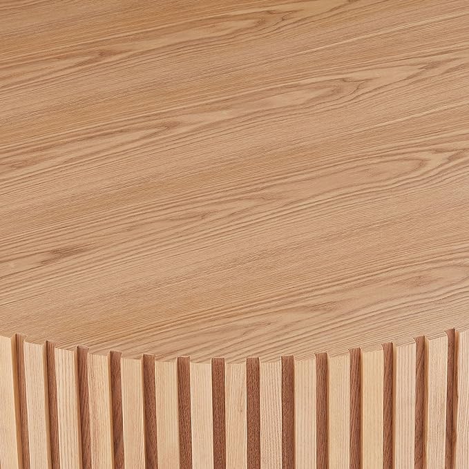 35.43" Modern Round Coffee Table,Handcraft Relief Drum Circle Wood Side End Accent Center for Living Room, Apartment, Oak