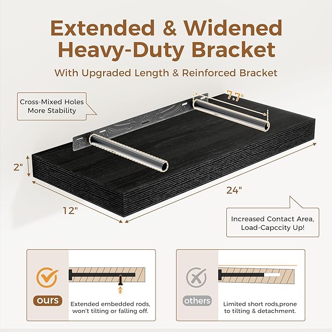 • Special Feature : 12 Inch Deep, 2 Inch Thick, Invisible Heavy-Duty Bracket, Large Storage & Display Space, Wall Mounted Shelves 12 Inch Deep, 2 Inch Thick, Invisible Heavy-Duty Bracket, Large Storage & Display Space, Wall Mounted Shelves