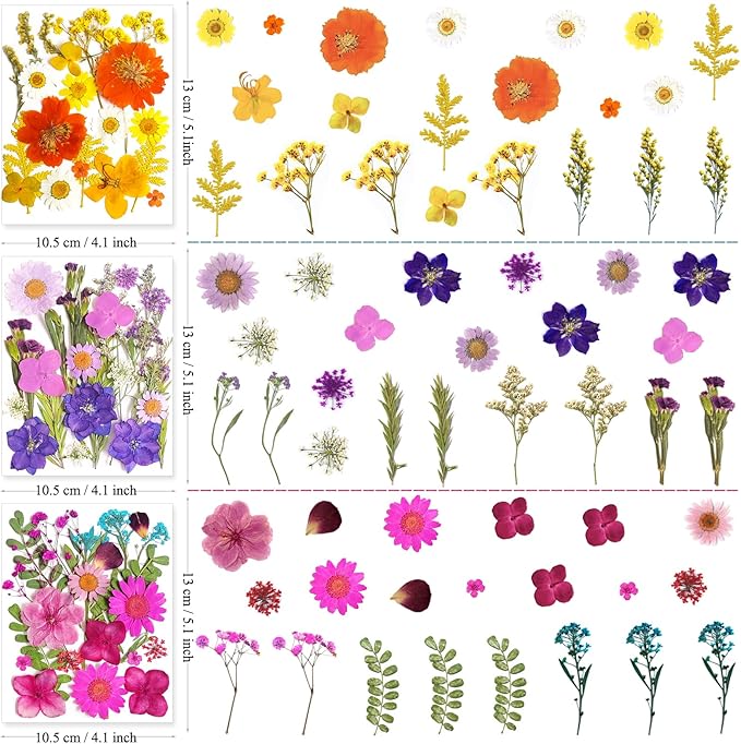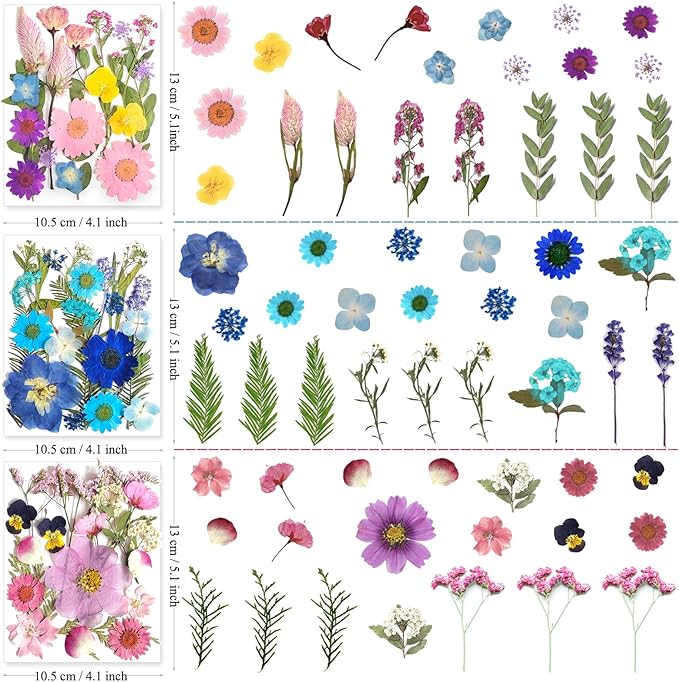 • Different Uses: The DIY art of dried flowers adds natural beauty and a hint of creativity to your life. Them perfect for resin molds, jewelry making, scrapbook supplies, phone case, candle making, bookmark, greeting cards, wall painting, photo frame, nail art, face makeup and home decoration etc.