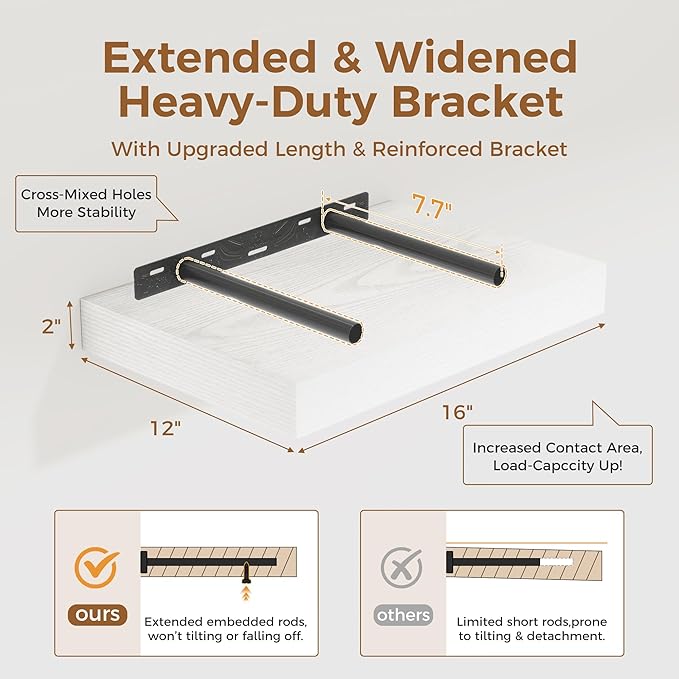 • Special Feature : 12 Inch Deep, 2 Inch Thick, Invisible Heavy-Duty Bracket, Large Storage & Display Space, Wall Mounted Shelves 12 Inch Deep, 2 Inch Thick, Invisible Heavy-Duty Bracket, Large Storage & Display Space, Wall Mounted Shelves