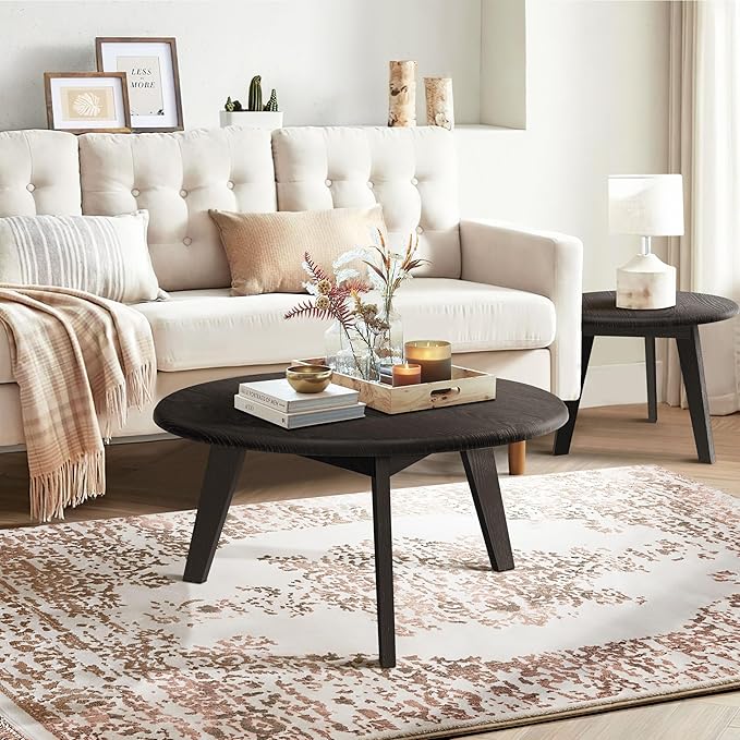 23.6" Coffee Table Mid Century Modern Farmhouse Round Nesting Stacking, Vintage Rustic Solid Wood, Black Accent Coffee Table for Living Room, Bedroom & Office, Espresso