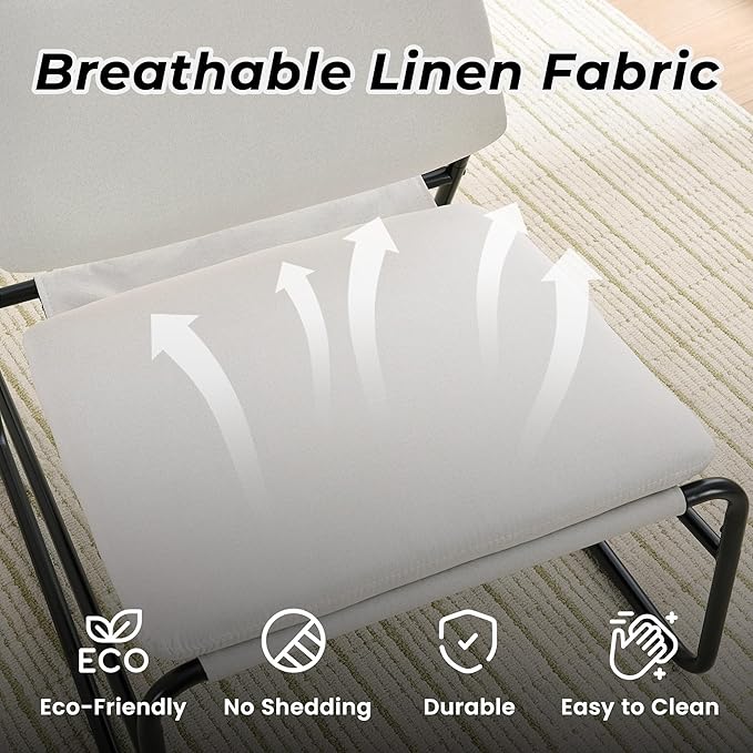 • 【Breathable Linen Upholstery】 - Crafted with durable and breathable linen fabric, which ensures the chair withstands daily use while maintaining its aesthetic appeal, this sling chair provides a soft and breathable seating experience. The fabric's texture adds sophistication to any space, making it a versatile choice for living rooms, reading rooms, bedrooms, etc
