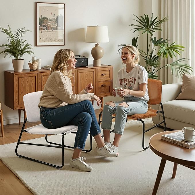 • 【Comfort & Sturdy】- Enjoy soft relaxation on the foam seat cushion. Built with a sturdy, integrated metal frame, this sling accent chair is able to withstand up to 250 lbs, offers reliable stability and long-lasting durability. The smooth, rounded edges minimize the risk of bumps and bruises, making it a secure and reliable choice for various types of rooms