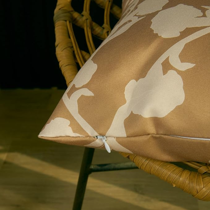 Mantle & Mason Floral Outdoor Pillows Waterproof for Patio Furniture 18x18 Set of 2 Tan Decorative Pillow Covers for Couch Porch Chair Bench Reversable Chinoiserie Home Decor Pillow Cases