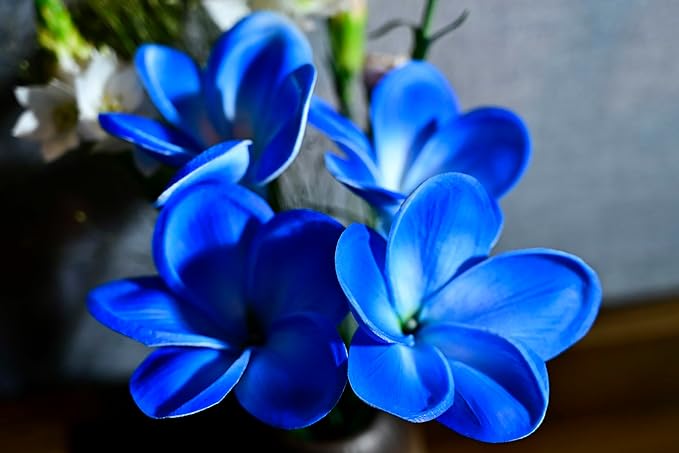 Birthday Gifts for Women 10pcs Bright Blue Flowers PU Real Touch Flowers Hawaiian Plumeria Frangipani Artificial Flowers for DIY Birthday Gifts Wedding Gifts Home Decor Table Centerpiece