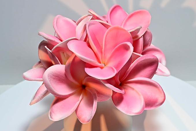 10pcs Pink Flowers PU Real Touch Flowers Hawaiian Plumeria Tropical Artificial Flowers for DIY Floral Gifts Wedding Home Office Table Decor Farmhouse Table Centerpiece Decorations