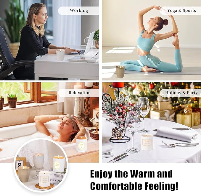• 【Enchanting Fragrance】This scented candles is crafted with a handmade natural wax base, paired with a lead-free cotton wick and premium rose essential oils. The white candle not only purifies indoor air but also fills your space with a bright, natural aroma—delivering a fresh, pure fragrance that soothes the mind, eases stress, and uplifts your mood with lasting joy