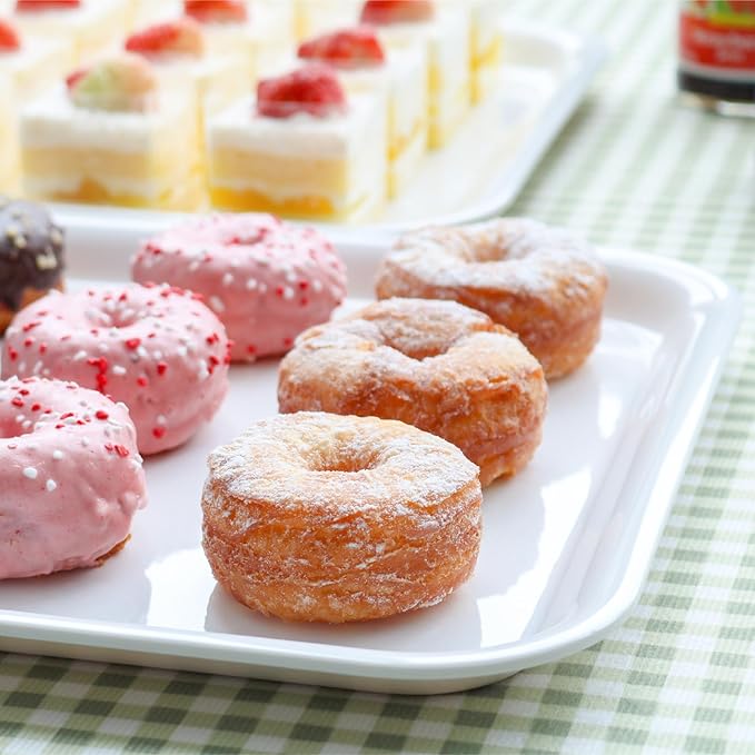 • Nice Size: 17"L x 12"W x 0.8"H. Set of 2 melamine serving trays will support a lot of food/drinks