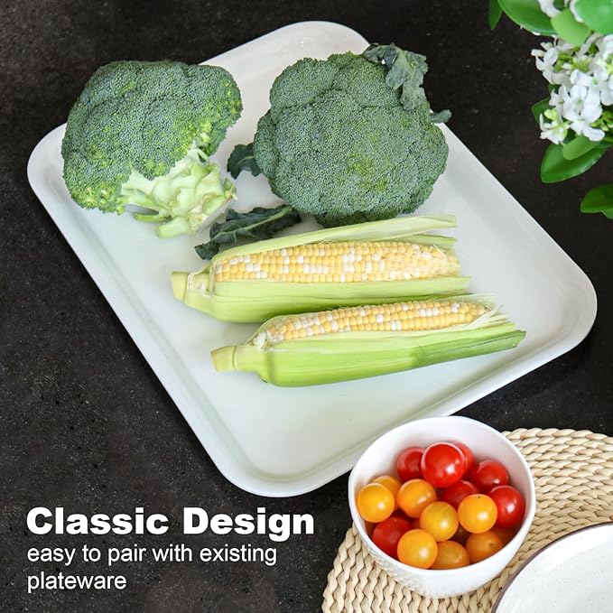 17 x 12 inches Melamine Serving Tray, Dinner Plate Tray, Serving Platter for Appetizers, Breakfast, Drinks, Barbecues and Parties, White, Set of 2