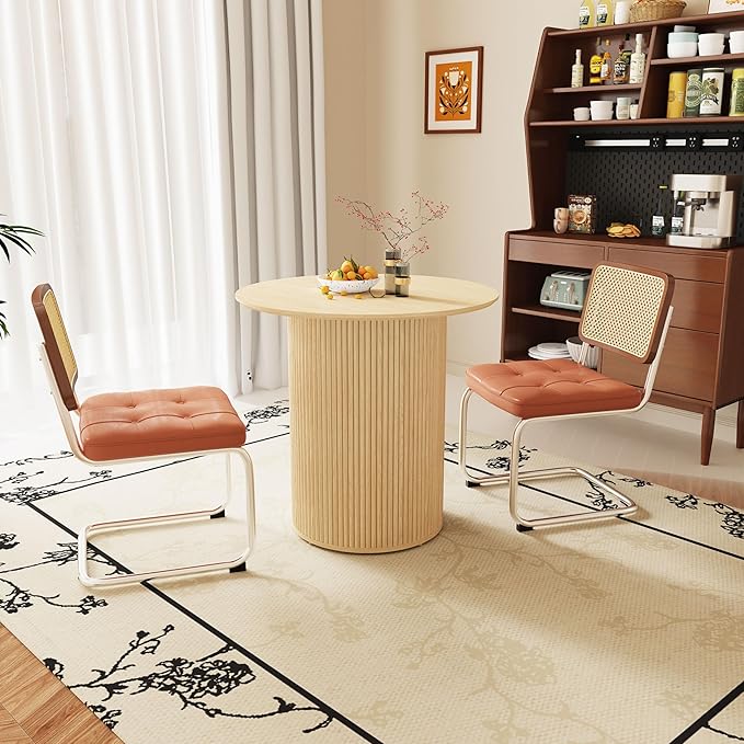 AVZEAR 31.5" Round Dining Table for 2 People, Small Kitchen Dinner Table with Fluted Wood Base, Farmhouse Circle Dining Tables for Home, Kitchen, Dining Room, Living Room (Nature)