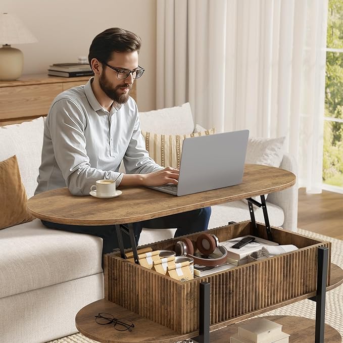 • Stable & Reliable Construction: Made from MDF wood materials, this fluted wood center table with round-edged lift tabletop offers a sturdy structure for smooth and steady lifting without shaking. Crafted with metal legs for stability and style, it offers strong support while adding a unique touch to your living room