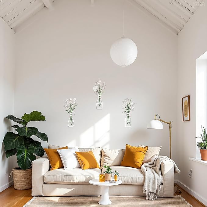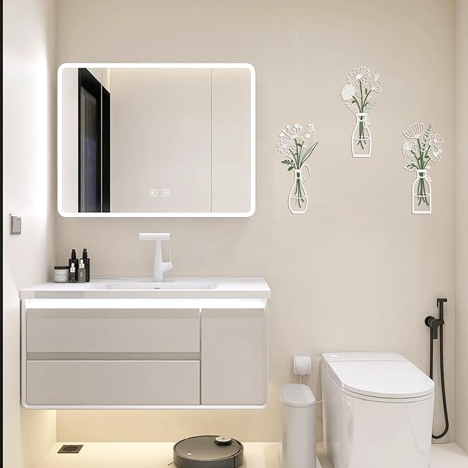 • Metal BATHROOM WALL DECOR SET: Letter-Free Version, Create an elegant focal point with this three-piece set of metal wall art decor. Each piece measures 13.8" x 6.3" and features delicate floral silhouettes for a modern, wordless look.
