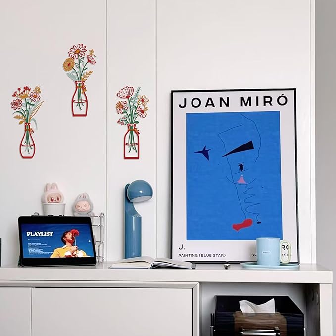 • Perfect for Any Room – RIJINDOUJIN 3-Piece Metal Flower Floral Vase Wall Art, blending minimalist design with rich color to brighten bedrooms, living rooms, hallways, kitchens, bathrooms, dining rooms, or workspaces.