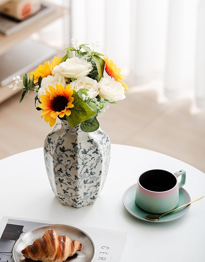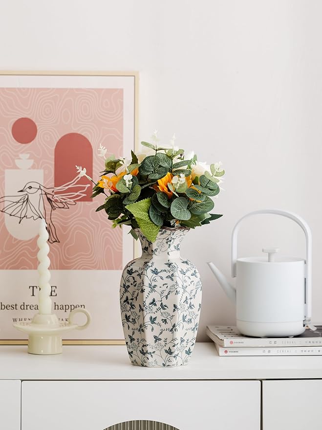 • 【ELEGANT DESIGN】This handcrafted Chinese-style vase features beautiful blue and white patterns and an elegant hexagonal outline, making it perfect for enhancing your home decor. As a blue and white vase, its floral patterns add a unique charm to any setting.