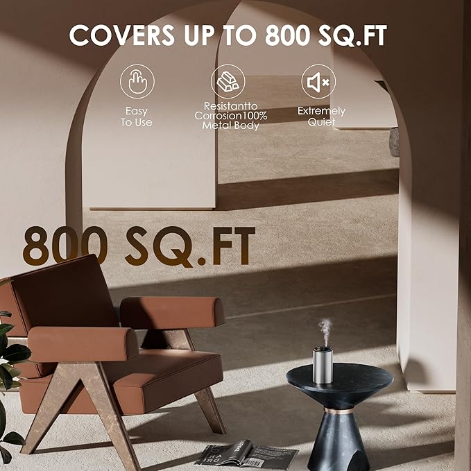 • Wide Coverage & Compact and Efficient: The Diffuser for Essential Oils can cover an area of up to 800 sq. ft and operates efficiently in large spaces. It effectively eliminates and masks unpleasant odors in areas such as pet rooms and bathrooms.