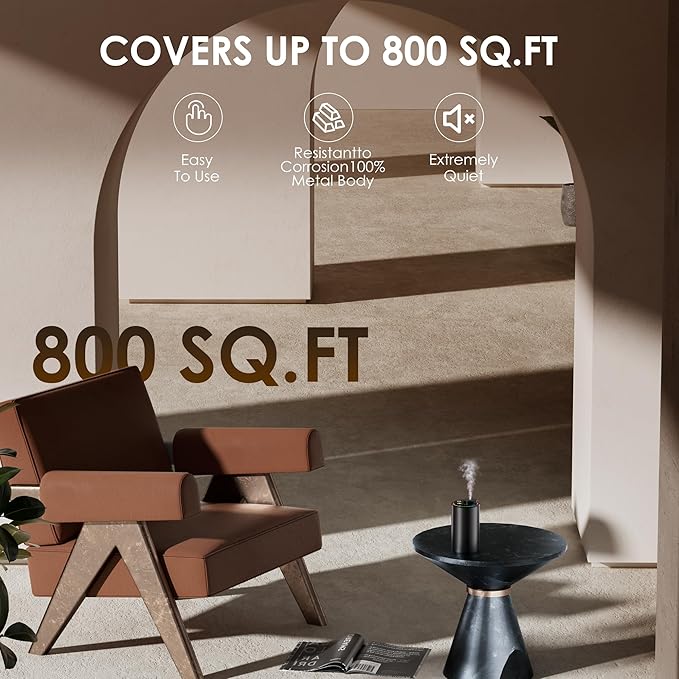 • Wide Coverage & Compact and Efficient: The Diffuser for Essential Oils can cover an area of up to 800 sq. ft and operates efficiently in large spaces. It effectively eliminates and masks unpleasant odors in areas such as pet rooms and bathrooms.