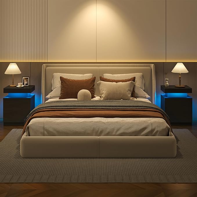 • Adjustable Light: These led nightstands offer adjustable brightness levels for the LED lights, allowing you to customize the lighting to suit your preferences or activities. Whether you need a soft, ambient glow or a brighter light for reading, you can easily adjust the brightness with the remote