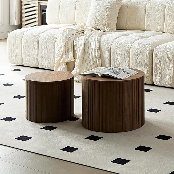 • 【Study & Durable】This drum coffee tables adopt MDF material, waterproof and wear-resistant, Multi-step finish process achieves both good looks and superior durability. Foot pads at the bottom can be non-slip to prevent scratches on the floor