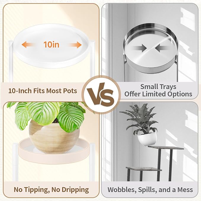 • 【Perfect Home for Big Pots】Say goodbye to the frustration of finding the right spot for your big and heavy flower pots. The newly upgraded 10-inch tray provides the perfect home they deserve. It gathers them into one beautiful display, raised for better sunlight and more convenient care.