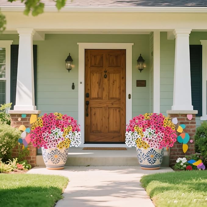 • 💐Versatile for Indoor/Outdoor: Artificial flowers perform well in porches, gardens, pots, windowsills & more—withstanding rain/wind while adding year-round color to weddings, memorials, and any space.