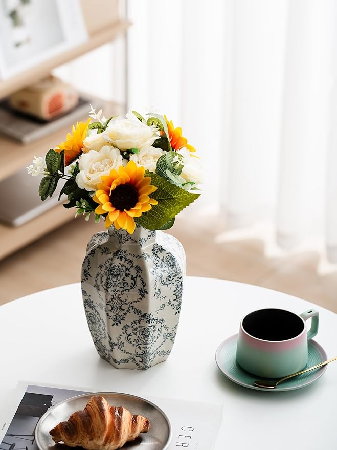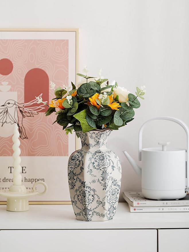 • 【ELEGANT DESIGN】This handcrafted Chinese-style vase features beautiful blue and white patterns and an elegant hexagonal outline, making it perfect for enhancing your home decor. As a blue and white vase, its floral patterns add a unique charm to any setting.
