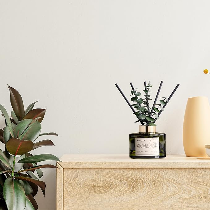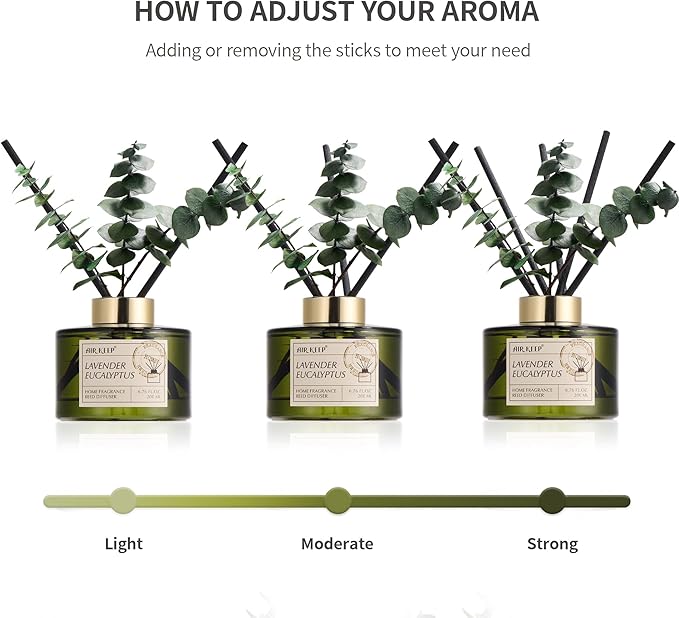 Airkeep Reed Diffuser Set with 6.76 fl oz Lavender Eucalyptus Scent Essential Oils and 3 Leaves & 8 Diffuser Sticks,Bathroom Shelf Decor & Air Freshener, House Bedroom Office Decor & Gifts