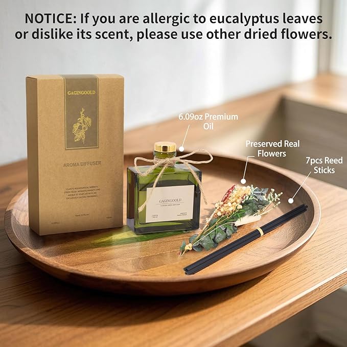 • Important Note: Contains real dried eucalyptus leaves and dried flowers . Please use other included dried flowers if you have an eucalyptus allergy or dislike its scent.