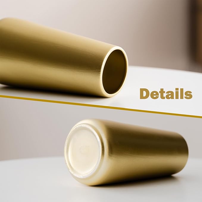 Light Gold Vase - 8" Big Gold Ceramic Flower vase for Home/Table/Accent Decor, Minimalist Modern Vases for Centerpieces, Room Decor, Living Room, Bedroom or Gift