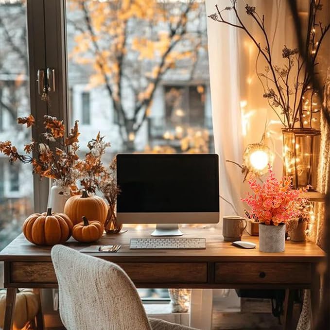 • 【Autumn Decor】 Small fall artificial plants can be placed on tabletop, window, office desk, shelf ,farmhouse,bathroom and dining table. They easily match everywhere of your home.