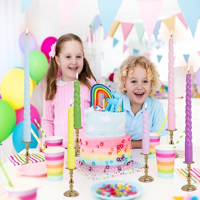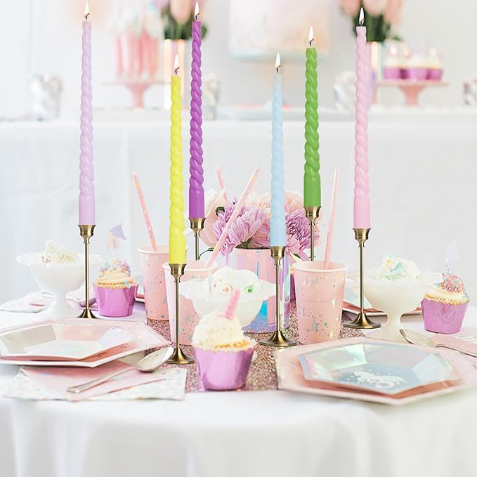 • 【Elegant Spiral Design in 6 Colors】: Elevate your decor with twisted elegance! This set includes 6 rich colors: Yellow, Pink, Blue, Emerald, Lilac, and Deep Purple—perfect for matching any theme or tablescape.